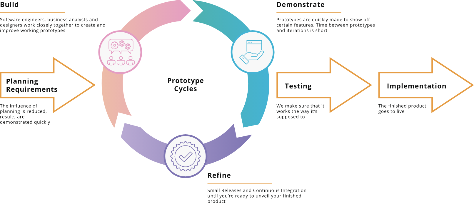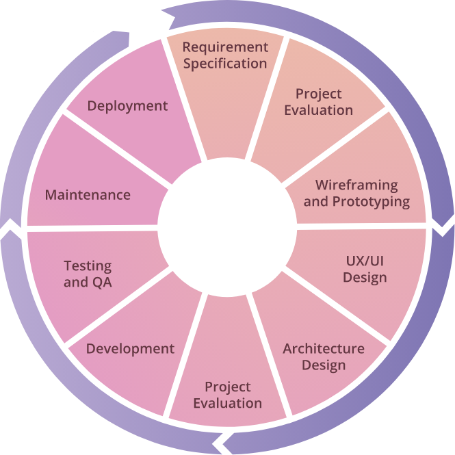 Разработка программного обеспечения полного цикла — это непрерывный процесс, который начинается от сбора информации до непрерывного обслуживания приложения. Каждый проект, особенно крупный, имеет этапы, которые могут идти в разной последовательности или даже быть пропущены. Независимо от того, какой тип модели развития выбран, мы можем следовать любой из них – Waterfall, Spiral, V-Shaped, Iterative or Agile. |